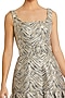 Featuring a gold striped gown in metallic jacquard base with animal-inspired print, a square neckline and box-pleats. Style it with statement dangler earrings, a sleek clutch, and heels, perfect for galas, weddings, or the red carpet.