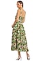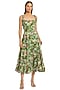 Featuring a green ruffled midi dress in cotton base with floral print and a square neckline. Accentuate it with statement earrings and block heels for cocktail parties or evening soirees.