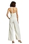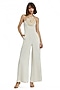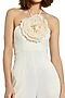 Featuring an ivory jumpsuit in polyester base with a cross-halter neckline and intricate 3D floral detailing. Accentuate it with statement earrings and heels for evening soirees or cocktail parties.