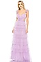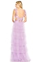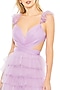 Featuring a lilac tiered gown in polyester and tulle with cut-out waist. Accentuate it with statement earrings and heels for an evening or cocktail look.