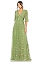 Moss Green Mesh Floral Embroidered Gown