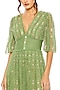 Featuring a moss green gown in mesh base with a V-neckline, floral embroidered and ruffle detailing. Accentuate it with statement jewellery and heels for dangler earrings and heels for a destination wedding or party.