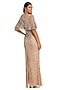 Nude Silver Mesh Embellished Capelet Gown