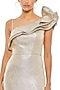 Featuring an oyster one-shoulder asymmetric mini dress in metallic base with ruffled shoulders. Accentuate it with dangler earrings and heels for evening soirees or cocktail parties.