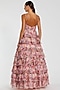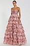 Pink Chiffon Floral Printed Tiered Ruffled Gown