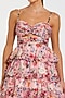 Featuring a pink ruffled tiered gown in chiffon base with floral print, cut-out detail and a sweetheart neckline. Accentuate it with statement earrings and block heels for cocktail parties or evening soirees.