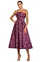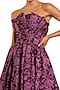 Featuring a purple midi dress in brocade base with a strapless neckline, box-pleats and an A-line silhouette. Style it with statement dangler earrings, a sleek clutch, and heels, perfect for galas, cocktail or evening parties.