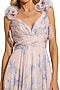 Featuring a purple ruffled dress in chiffon base with floral print and cut-out side detail. Accentuate it with statement earrings and block heels for cocktail parties or evening soirees.
