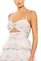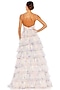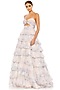 Featuring a purple tiered gown in chiffon base with floral print and a sweetheart neckline. Accentuate it with statement earrings and block heels for cocktail parties or evening soirees.