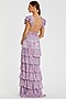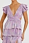 Featuring a purple-tiered ruffled gown in metallic plisse base. Accentuate it with statement earrings and block heels for evening soirees.