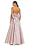 Featuring a raspberry pink strapless gown in metallic brocade fabric base with oversized bow detail and hidden pockets. Accentuate it with dangler earrings and heels for evening soirees or cocktail parties.