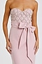 Featuring a rose pink strapless gown in crepe base with a sweetheart neckline and rhinestone embellishment. Accentuate it with statement earrings and block heels for cocktail parties or evening soirees.