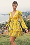 Yellow Mesh Floral Printed Mini Ruffle Dress