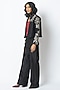 Featuring a black jacket in handloom chanderi silk base with embroidery. It is paired with a satin crepe inner and pants. Accentuate it with bold earrings and strappy heels for cocktail or evening celebrations.