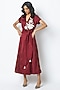 Burgundy Bemberg Cotton Satin Embroidered Dress