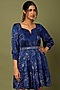 Featuring a cobalt blue dress in modal and cupro base with gold print and antique gold zari embroidery. It is paired with a belt.
