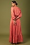 Featuring a coral dress in cupro modal base with gold print and gold zari embroidery. It is paired with a matching belt.