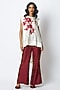 Ivory & Deep Wine Linen Satin Embroidered Co-Ord Set