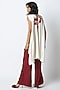 Featuring an ivory blazer trail top in linen satin base with embroidery. It is paired with an inner and deep wine chanderi silk trousers. Accentuate it with diamond stud earrings, strappy heels and a bag for brunches, sundowners, or casual outings.