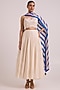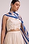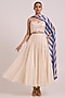 Featuring an ivory crop top in handloom chanderi silk base with lace embroidery. It is paired with skirt and silk stripe printed stole. Style it with statement jewellery and heels for a brunches, dates or sunny day outings.