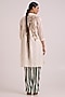 Featuring an ivory tunic in pure handloom chanderi silk base with golden embroidery. It is paired with green bemberg cotton satin stripe printed trousers. Style it with statement jewellery and heels for a brunch or everyday wear.
