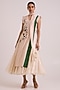 Featuring a multi-colored flap tunic in pure handloom chanderi silk base. It is paired with a circular skirt. Style it with statement jewellery and heels for a modern statement or everyday wear.