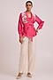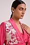 Featuring a pink wrap blazer top in pure handloom chanderi silk base. It is paired with wide-leg pants and a belt. Style it with statement jewellery and heels for a brunches, dates or sunny day outings.