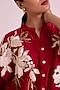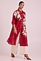 Featuring a red tunic in chanderi silk base with high side slits and floral embroidery. It is paired with wide-leg ivory pants. Accentuate it with pointed flats or block heels and subtle statement earrings for a stylish ensemble, ideal for daytime outings, casual workdays or relaxed brunches.