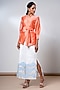 Featuring a tangerine wrap top in handloom cotton base. It is paired with a white skirt. It versatile, refined, and effortlessly stylish, perfect balance of calm elegance.