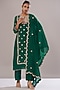 Featuring an emerald green kurta in chanderi base with gota dori handwork. It is paired with pants and a dupatta. Perfect for mehendi, wedding or festive ceremony.