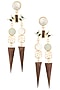 Featuring an 18k gold plated pair of 3D cut wooden earrings with mother of pearl stone and aqua and dark blue enamelling set in brass metal.