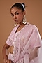 Featuring a pink lehenga in dupion silk base with gota, sequins, and pearls hand embroidery. It is paired with an embroidered blouse and a silk organza dupatta having cutwork and tassel detailing. Perfect bridal wear for an engagement or a wedding ceremony.
