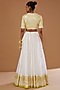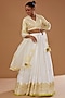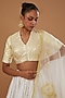 Featuring a white lehenga in silk chanderi base with silk organza inserts hand embroidery. It is paired with a dupion silk blouse having gota and beads hand embroidery, including a silk organza dupatta having cutwork and tassel details. Perfect bridal wear for an engagement or a wedding ceremony.