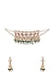 Featuring a gold finish choker necklace studded with semi-precious rubies and green beads, set in mixed metal. It is paired with a matching pair of earrings.