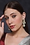Featuring a pair of gold finish dangler earrings studded with emeralds and zircond diamonds, set in mixed metal. Perfect wear for festive or wedding ceremony.
