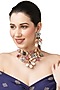 Featuring a rose gold finish necklace studded with multi-colored stones, set in mixed metal. It is paired with a matching pair of earrings.