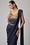 Featuring a blue stitched saree in pure georgette base with hand embroidery. It is paired with a blouse. Accentuate it with heels and statement earrings for wedding ceremonies.