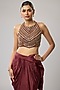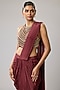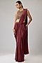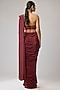 Featuring a maroon draped saree in pure crepe base with halter neck and hand embroidery. It is paired with an embroidered blouse. Accentuate it with heels and statement earrings for wedding ceremonies.
