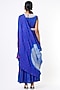 Featuring a cobalt blue double-layered dress in cotton silk base with sequins embroidery. It is paired with a matching belt and a pre-stitched bandhani silk drape having hand tie-dye print.
