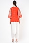 Featuring an orange top in chiffon base with gota patti embroidery and print. It is paired with contrasting ivory satin harem pants.