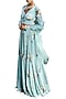 Featuring an aquamarine colored lehenga skirt in georgette and shantoon base with print. It is paired with a matching back knotted blouse having silver embellishments and organza dupatta.