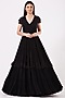 Featuring a black tiered anarkali in georgette and crepe base with embroidery and organza ruffled sleeves.