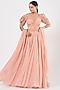 Featuring a blush peach lehenga in organza, crepe, net, and shantoon base. It is paired with a matching zardosi embroidered blouse and a dupatta.