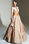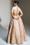 Mahima Mahajan presents a blush pink kalidar lehenga crafted in banarasi silk chanderi base with a dragonfly logo on the waist belt and hand embroidery. It is paired with an embroidered blouse and a silk organza dupatta. Accentuate the look with emerald or polki jewellery, a potli bag and heels for a wedding, sangeet or engagement ceremonies.