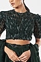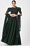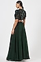 Featuring a bottle green lehenga in organza, crepe, net, and shantoon base. It is paired with a matching zardosi embroidered blouse and a dupatta.