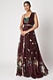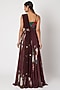 Featuring a brown anarkali in georgette and shantoon base with print. It is paired with a matching embroidered dupatta and a belt.