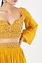 "Featuring a citrus yellow lehenga in georgette base with an attached zardosi embroidered belt. It is paired with a matching blouse.