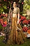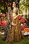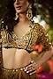 Mahima Mahajan presents a gold lehenga in organza base with hand embroidery. It is paired with an embroidered blouse and a dupatta. Accentuate it with statement jewellery and embellished heels, perfect for a wedding, sangeet or festive celebration.