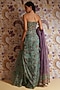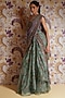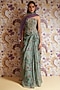Green Silk Organza Floral Printed Draped Skirt Set