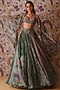 Green Silk Organza Floral Printed Lehenga Set